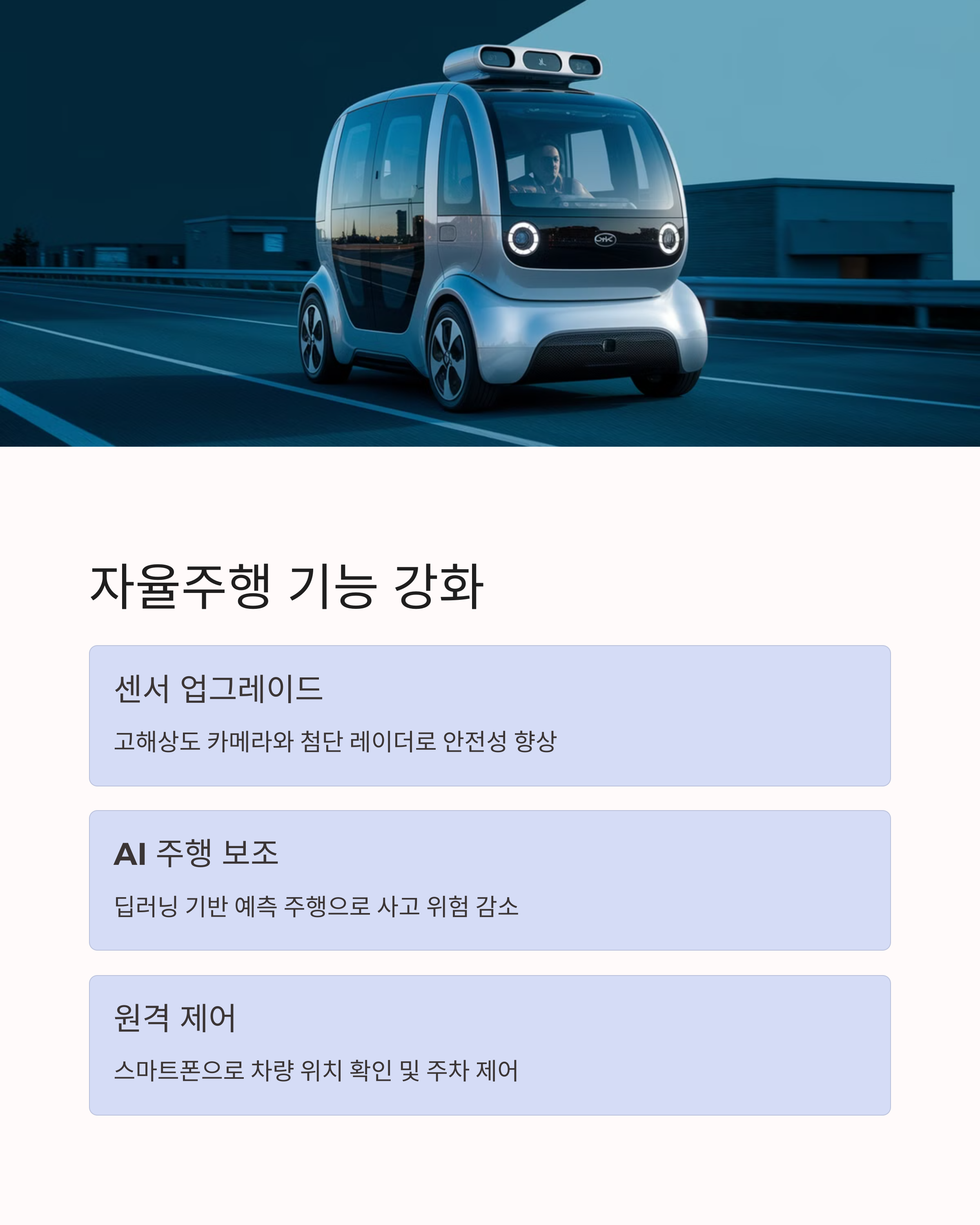 | 전기차 성능 최적화 | 주행 모드 자동 조정 | 스마트 페인트 적용 |