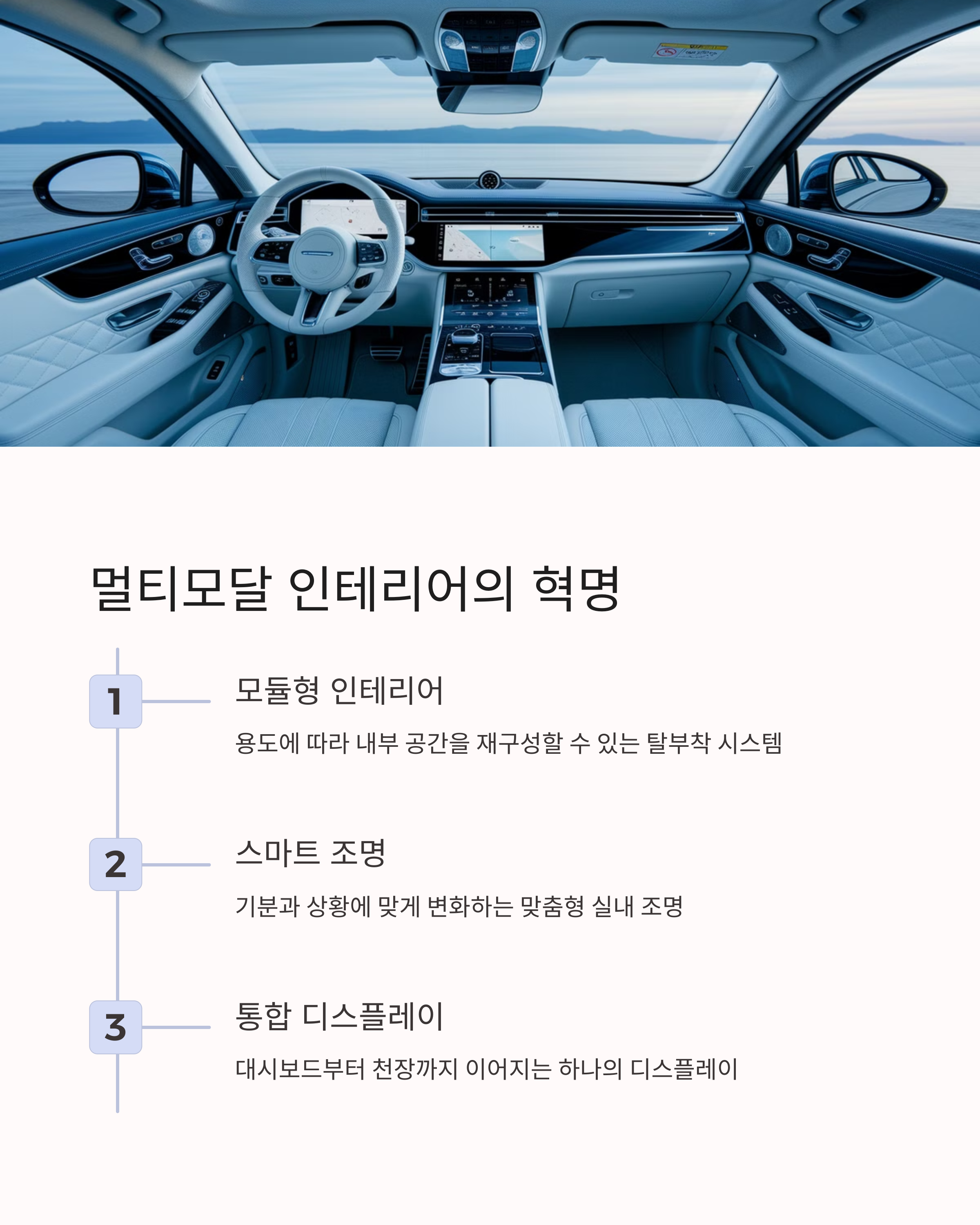 차량 데이터를 분석해 최적의 주행 모드를 자동 설정해주는 AI 프로그램이 등장하고 있으며, 스마트 디스플레이와 증강현실(AR)을 활용한 맞춤형 인테리어도 인기를 끌고 있습니다.