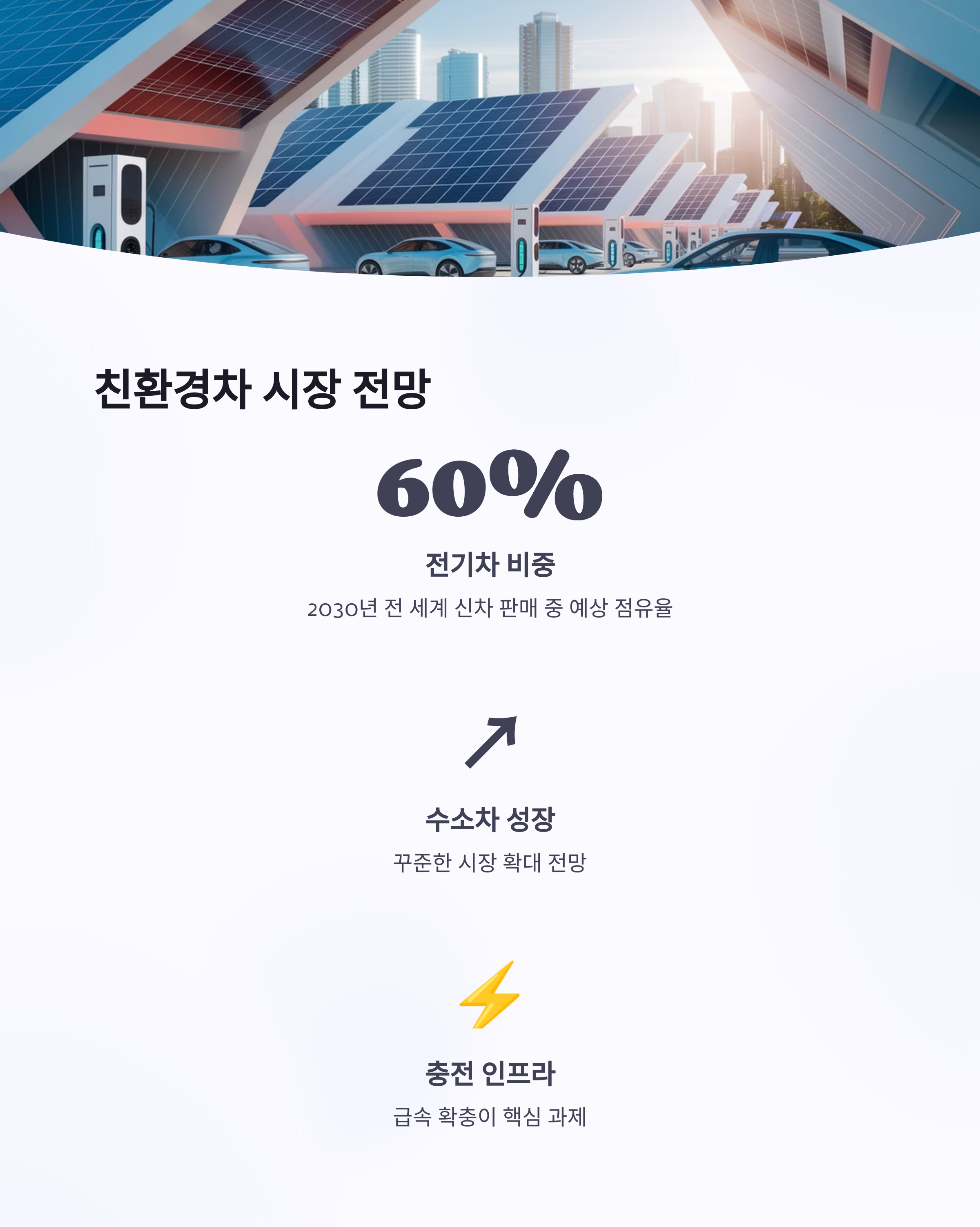 자동차 시장은 빠르게 변화하고 있으며, 2035년 이후에는 내연기관 차량이 점점 사라질 전망입니다. 전기차 및 수소차 중심의 친환경 모빌리티 시대가 다가오고 있으며, 각국 정부와 기업들은 이에 맞춰 인프라 확충과 배터리 기술 혁신을 가속화하고 있습니다. 앞으로의 자동차 산업 변화를 주목하며, 친환경 모빌리티 시대에 대비해야 합니다.