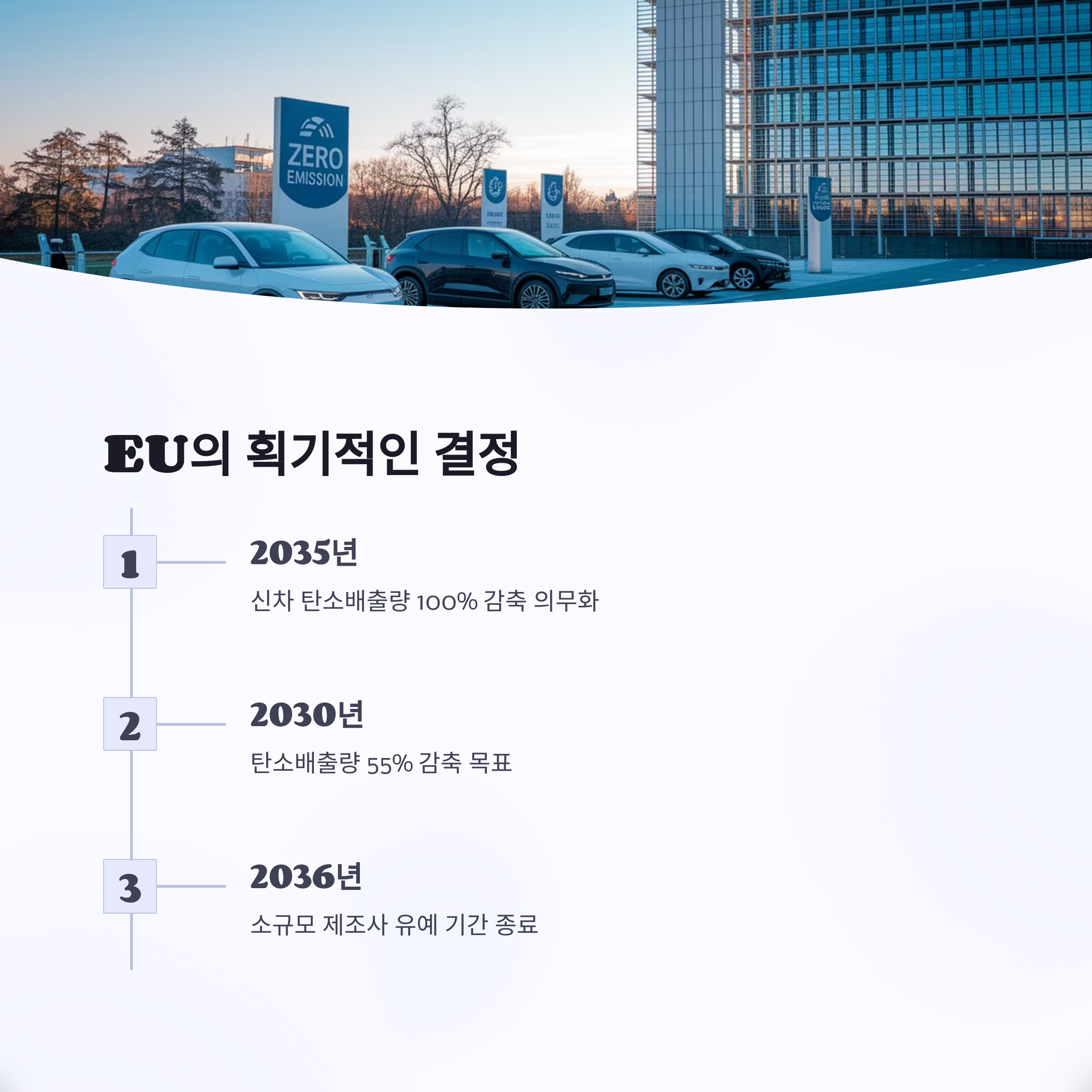 | 2035년 이후 | 내연기관차의 판매가 전면 금지됩니다. |