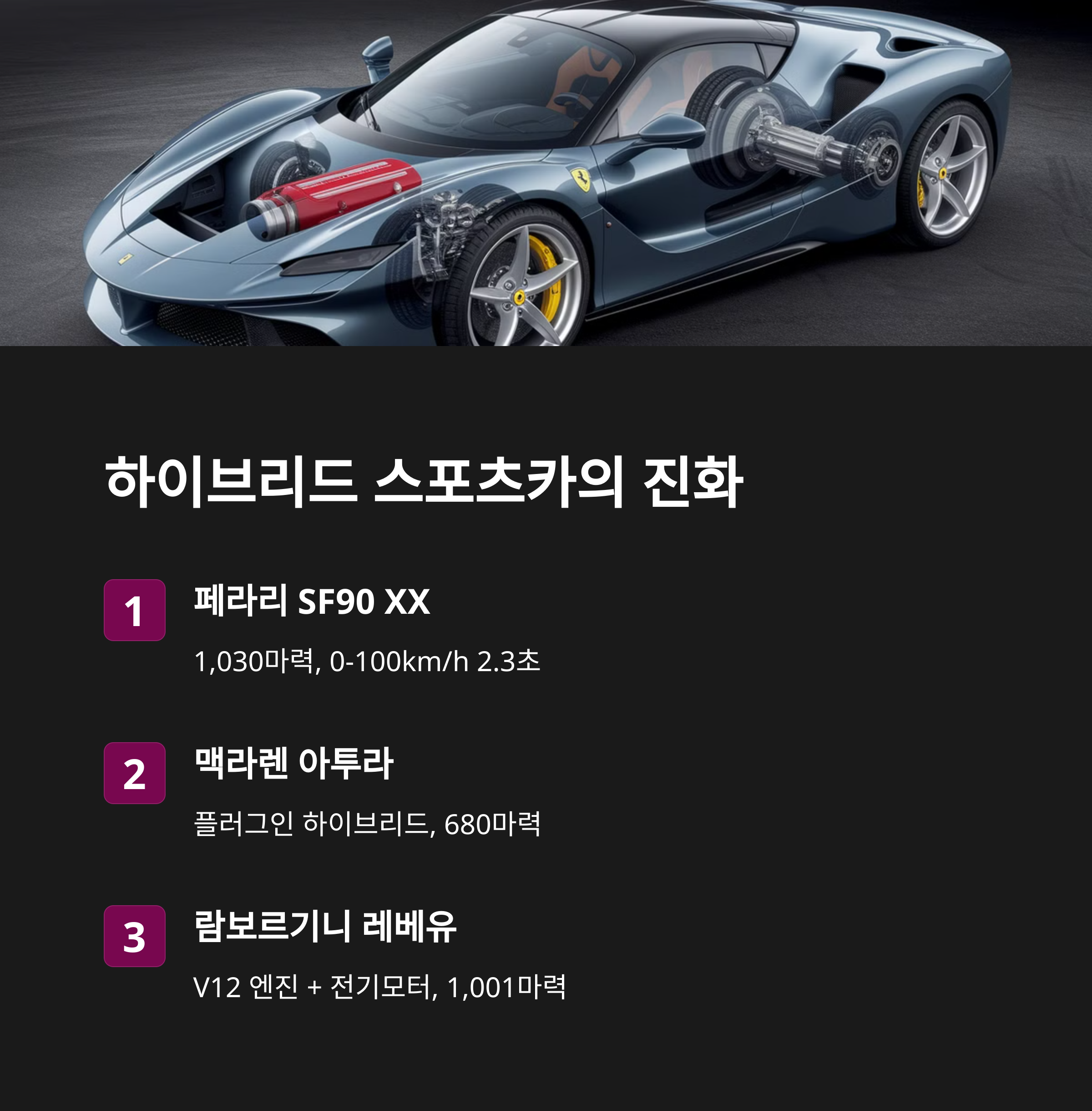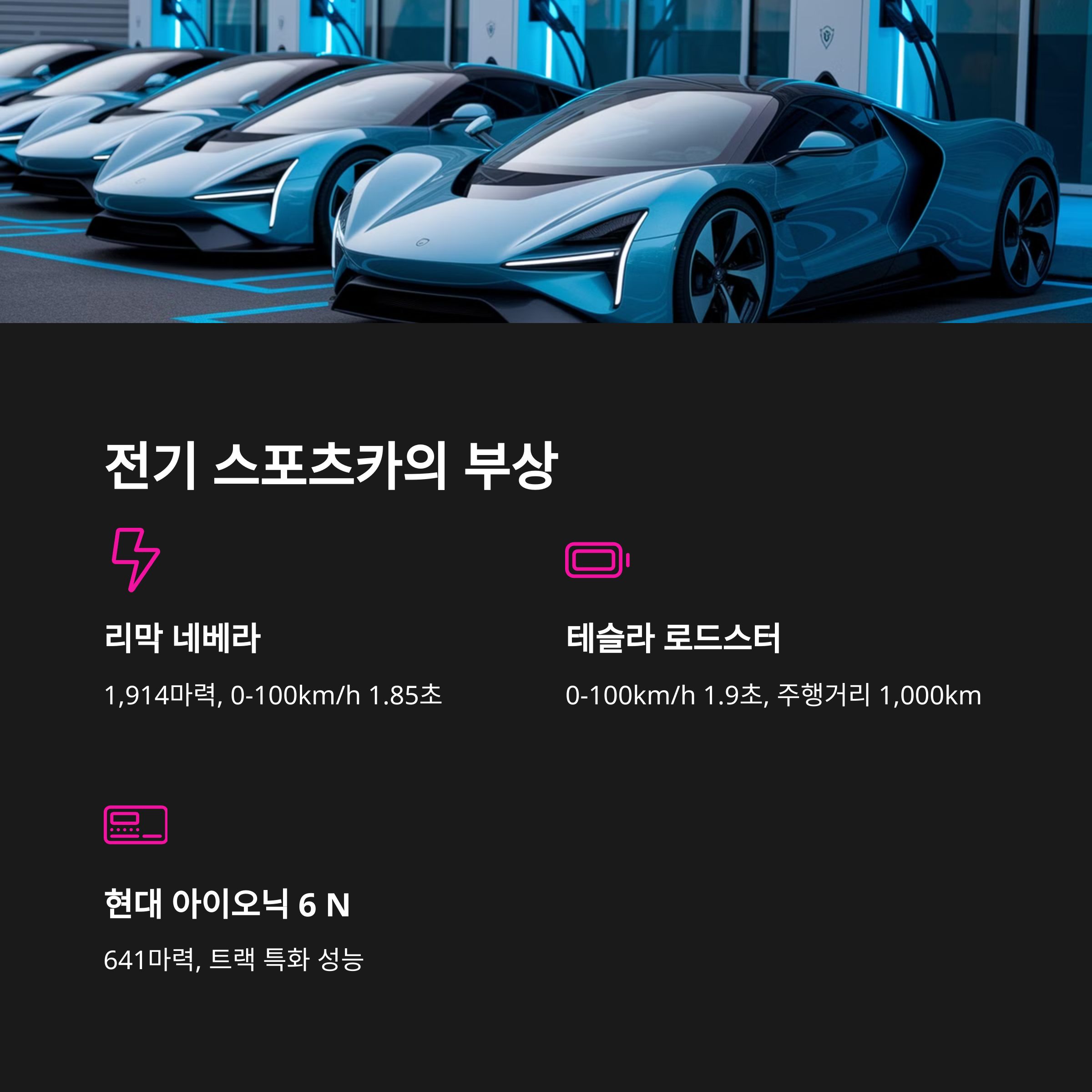 2025년 스포츠카 시장은 전기차와 하이브리드 모델이 강세를 보이며 내연기관 스포츠카들과 경쟁하고 있습니다. 전통적인 제조사들은 기존 내연기관 엔진을 유지하면서도 하이브리드 시스템을 추가하여 성능을 향상시키고 있습니다. 반면, 전기 스포츠카들은 강력한 토크와 빠른 가속력을 앞세워 새로운 기준을 만들고 있습니다.