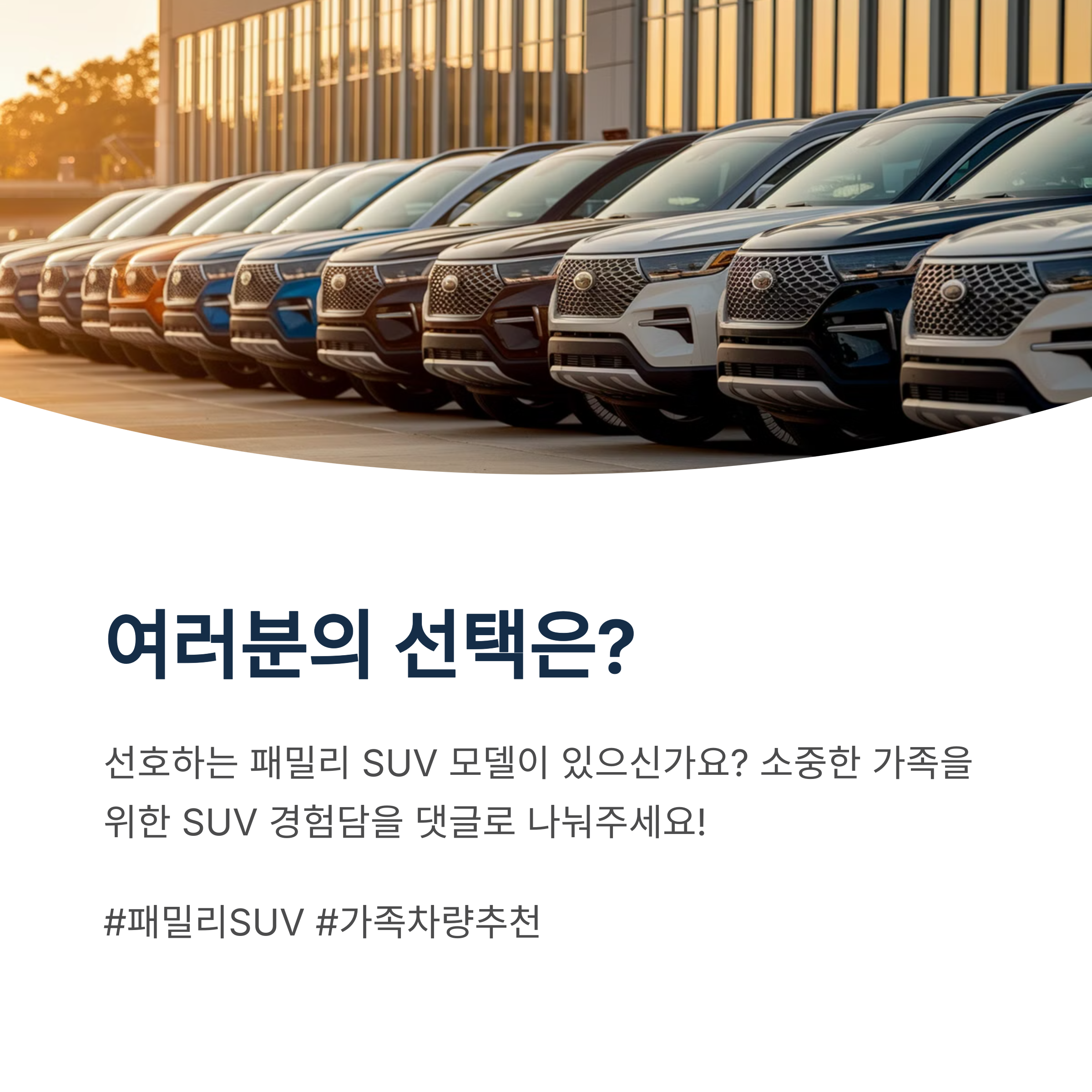 SUV 선택 시 가장 중요하게 생각하는 요소는 무엇인가요? 댓글로 여러분의 생각을 나눠주세요!